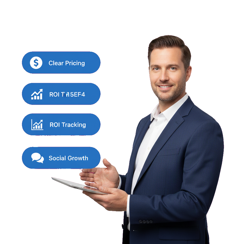 Get transparent social media management pricing without hidden surprises. Scale your brand, attract more leads, and dominate your local market. Month-to-month. Own every asset. Cancel anytime.